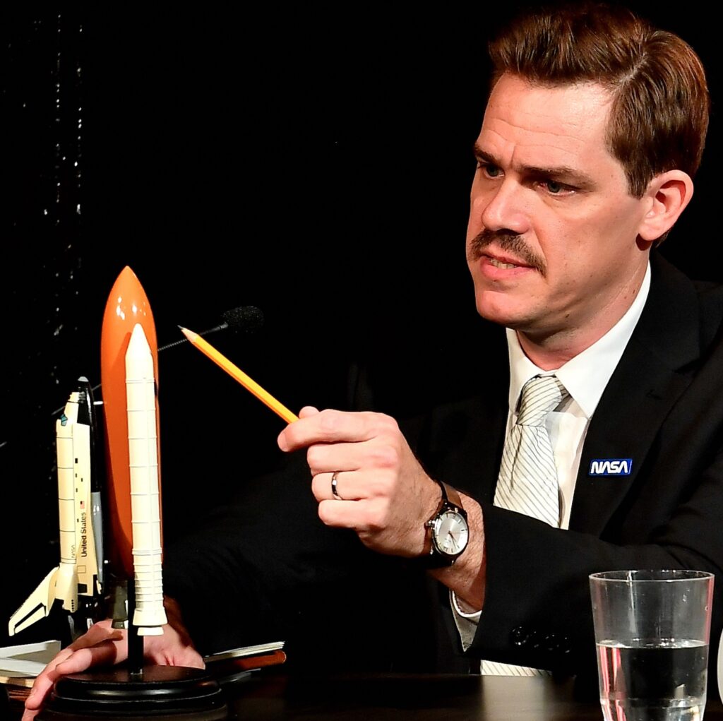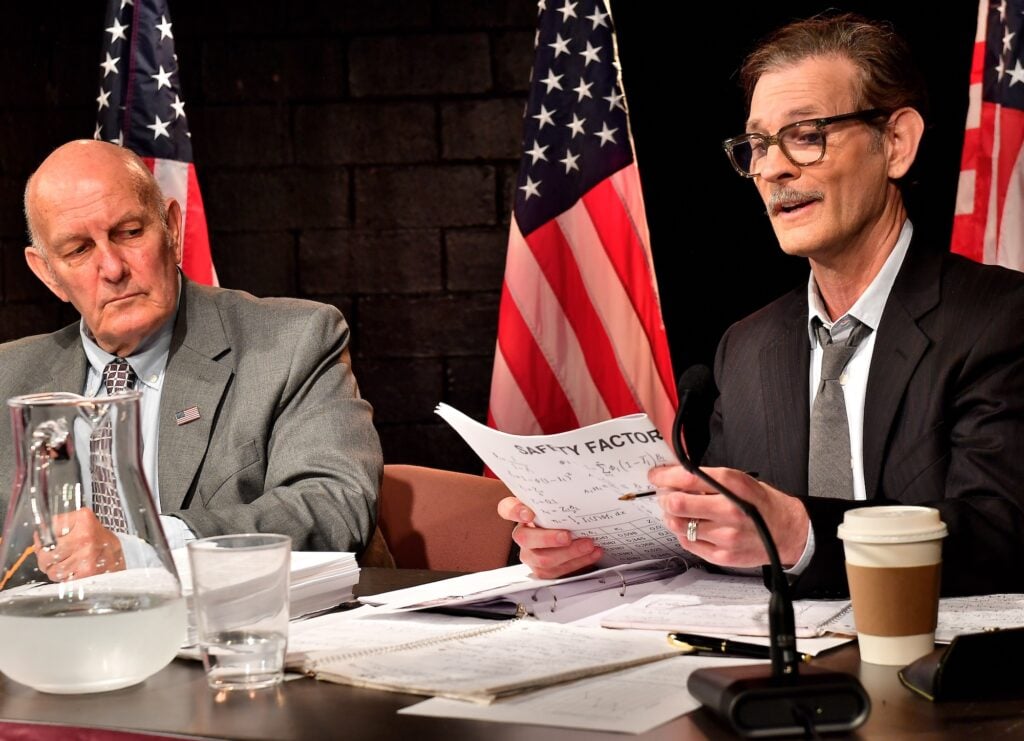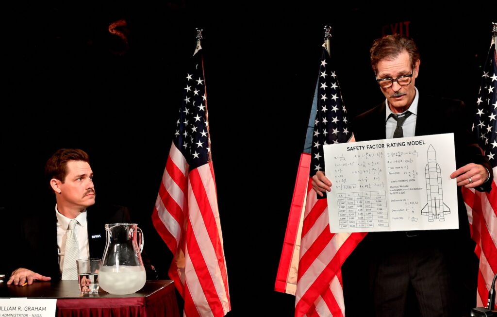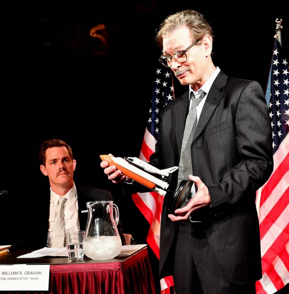 "One in Twenty-Five" dramatizes this moment in real time, from inside a whitewashed hearing room in Washington D.C. As Feynman pushes for honesty, NASA’s acting administrator (played by Copeland) clings to the party line, while a conflicted chairman tries to keep it all on script.